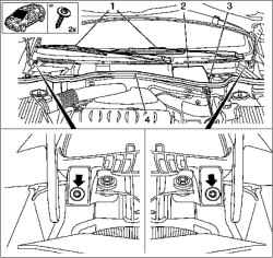 Демонтируйте обе внутренних обшивки передней стойки наверху 1.