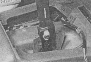 14. Высверлите четыре заклепки, крепящие кожух рычага переключения к кузову. Снимите рычаг вместе с кожухом.