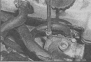 5.3 Ослабьте зажим и отсоедините верхний шланг от крышки кожуха термостата.