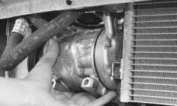 7. Выверните болты крепления компрессора кондиционера и, не отсоединяя от него трубопроводы, аккуратно отведите его в сторону.