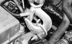 26. Отсоедините шланги от патрубков термостата, головки блока цилиндров и водораспределительной трубы.