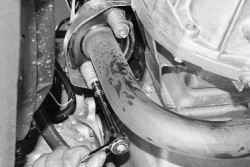 9. Установите детали в порядке, обратном снятию. Установите новую прокладку между выпускным коллектором и приемной трубой. Соединение элементов системы выпуска отработавших газов выполняйте специальными обжимными муфтами, имеющимися в продаже.