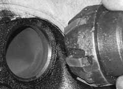 13. Удалите смолистые отложения с верхней поверхности головки и из впускных каналов. Эти отложения можно размягчить и смыть керосином или дизельным топливом.