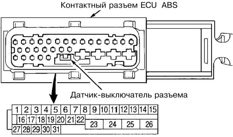 и клеммой № 2 контактного разъема блока управления ABS. Если результат