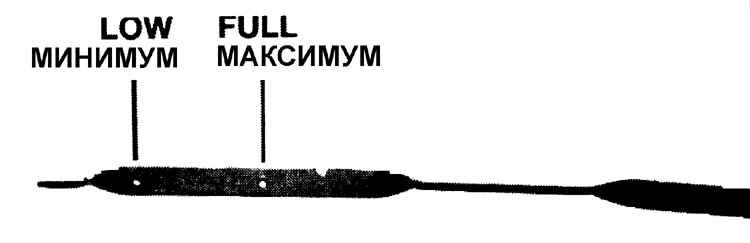 остатков масла. Вставьте щуп в двигатель и повторно извлеките его. |