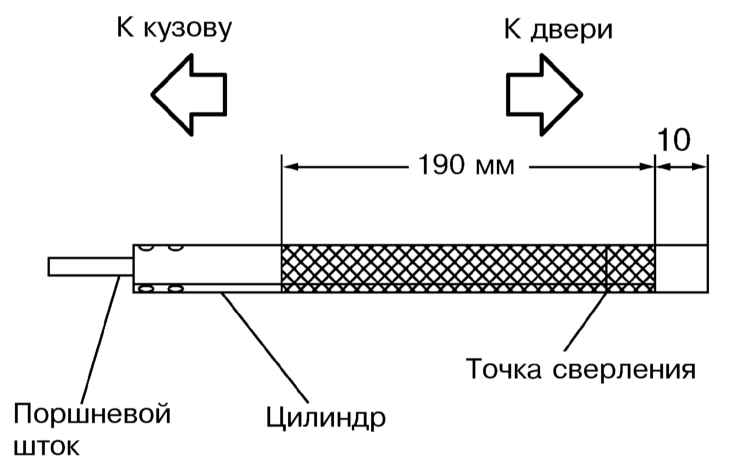 200 мм от дверного конца сборки. Утопив поршневой шток, выпустите