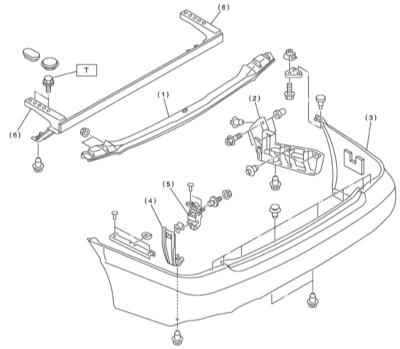 Детали установки заднего бампера на моделях Legacy Универсал/Outback