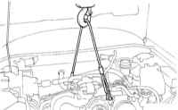 7. Приподнимите автомобиль, одновременно выбирая лебедкой стропы,