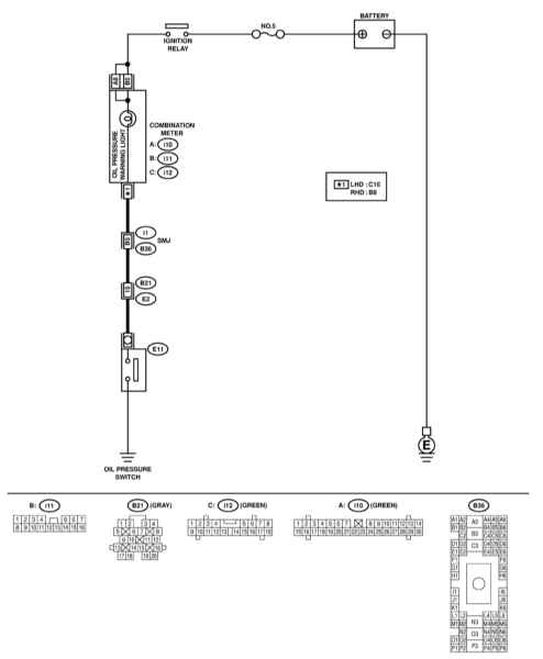 между комбинацией приборов и датчиком-выключателем давления двигательного