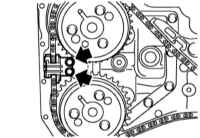 меток (см. выше), извлеките из натяжителя цепи стопорный стержень.