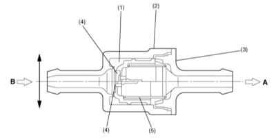 Клапан включен в испарительную линию, соединяющую адсорбер с впускным трубопроводом