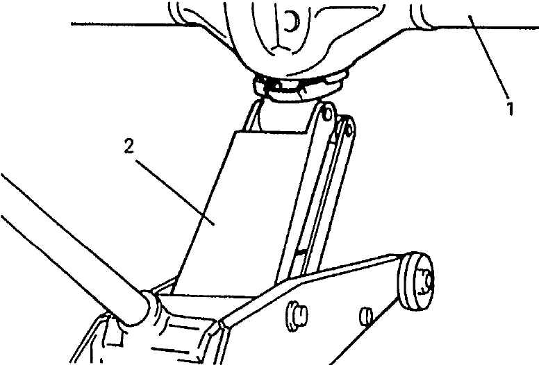 - Домкратом (2) подоприте корпус заднего моста (1).