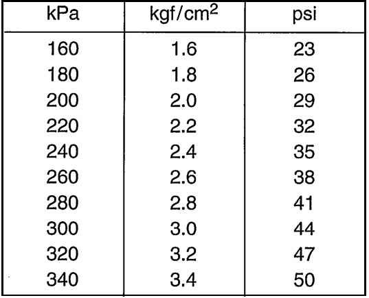 - : 1 psi = 6.895 kPa