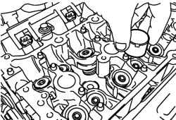 Установите толкатели клапанов и регулировочные прокладки в головку блока цилиндров. Нанесите моторное масло по периферии толкателя клапана, затем установите его в головку блока цилиндров ( рис. 2.87).
