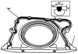 Нанесите герметик на сопрягаемую поверхность корпуса заднего сальника 1.