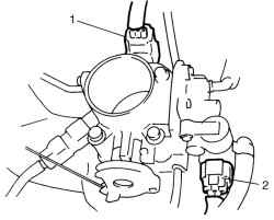 Отсоедините электрический разъем от датчика положения дроссельной заслонки 1 и клапана регулятора холостого хода 2 ( рис. 2.42).