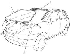 Рис. 8.33. Ветровое стекло: 1 – ветровое стекло; 2 – окантовка ветрового стекла; 3 – ограничитель ветрового стекла; 4 – распорная втулка