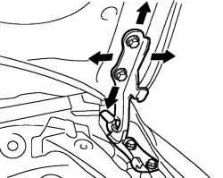 После регулировки затяните болты крепления петли к капоту.