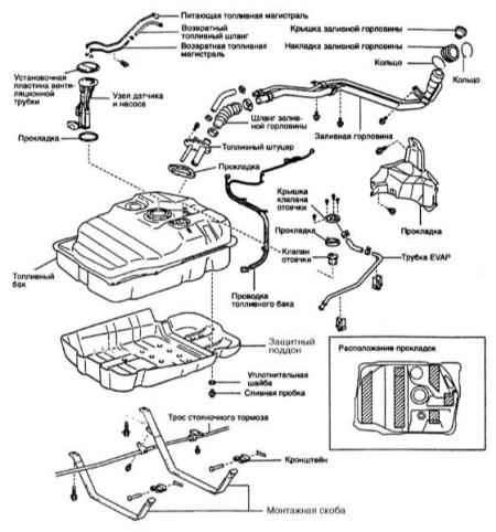 7. Отсоедините бензопроводы и линию возврата топливных испарений.