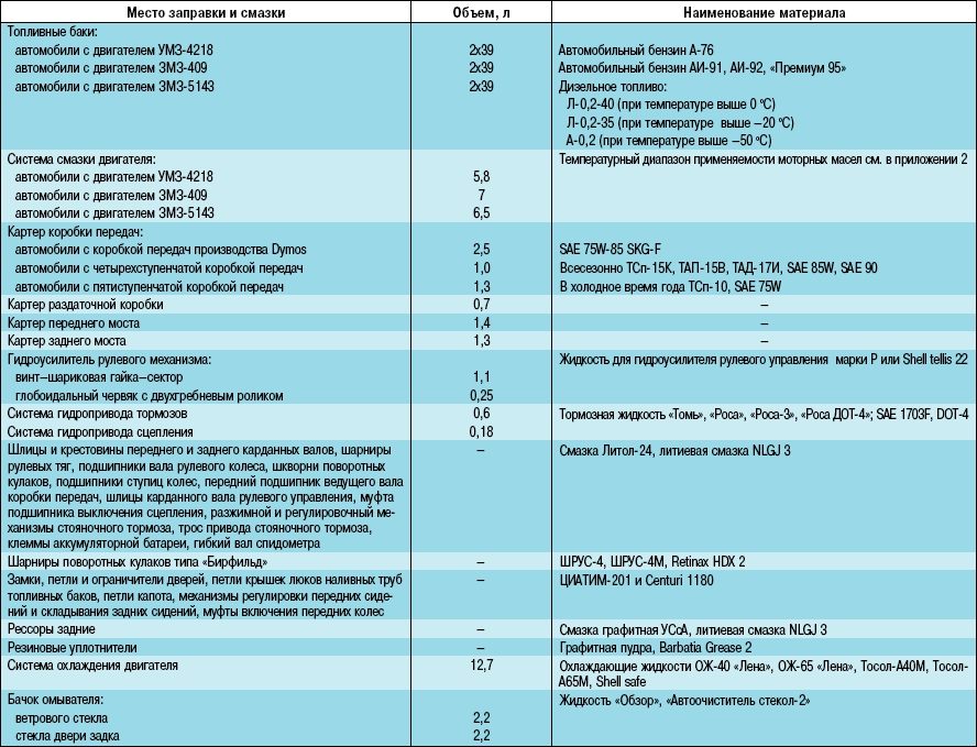 17.3. Приложение 3. Горюче-смазочные материалы и эксплуатационные жидкости