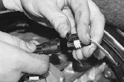 2. Сдвиньте с пластмассового держателя колодку жгута проводов выключателя света заднего хода…