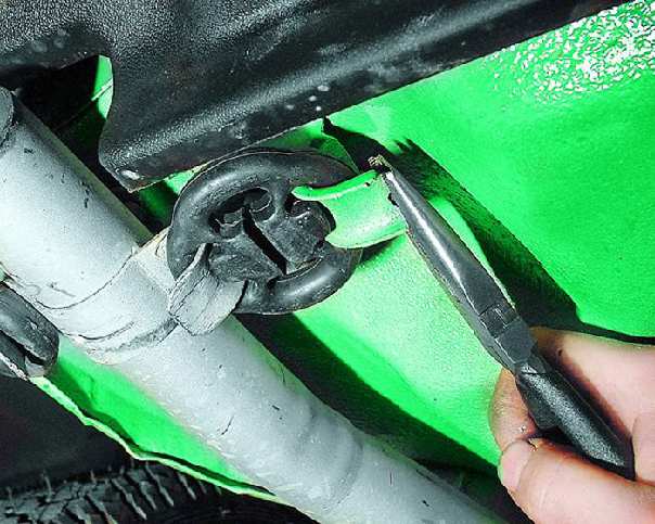 Резиновые подушки подвески выпускной системы заменяют, если из-за их повреждения или чрезмерной деформации элементы системы начинают стучать, соприкасаясь с кузовом или другими агрегатами автомобиля.