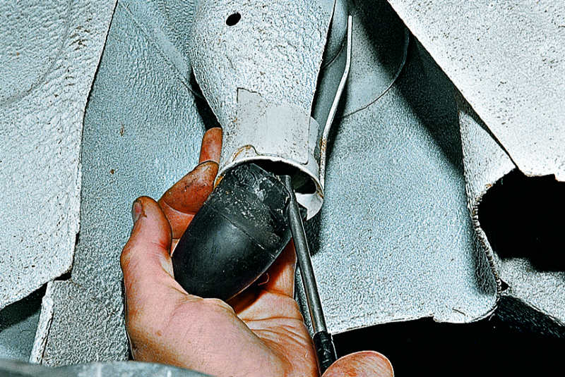 Отсоединяем амортизатор от кронштейна балки заднего моста и…
