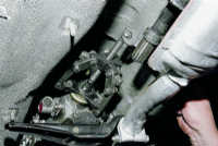 Отсоединяем от коробки передач карданную передачу (см. Замена карданной передачи) и сдвигаем ее назад.