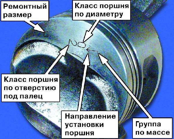 По массе поршни делятся на три группы: нормальную, увеличенную на 5 г и уменьшенную
