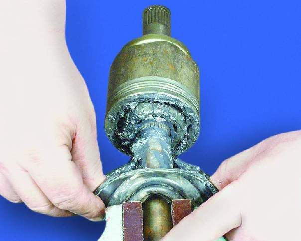 5. С помощью выколотки сбейте внутренний ШРУС с вала, прикладывая