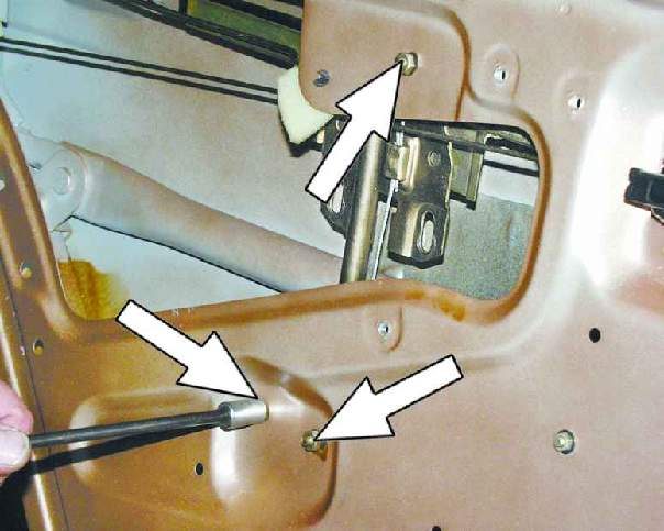 1. Откройте дверь и отверните два болта крепления кронштейна