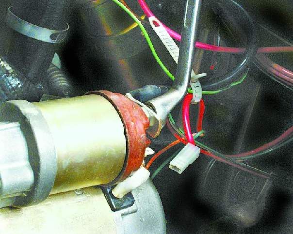 с проводом от выключателя света фонарей заднего хода на коробке передач.
