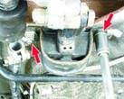 двигатель и выньте болт правой передней опоры силового агрегата.