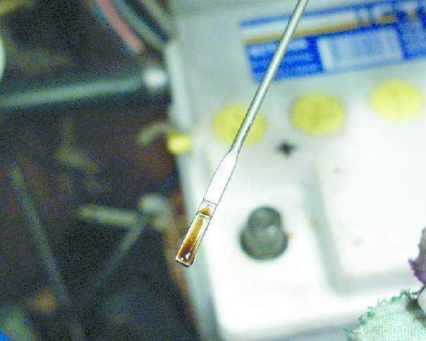 6. Снова выньте щуп и проверьте уровень масла в коробке. При необходимости