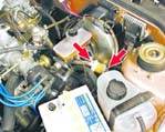 Из обеих трубок распылителя ускорительного насоса должны появиться