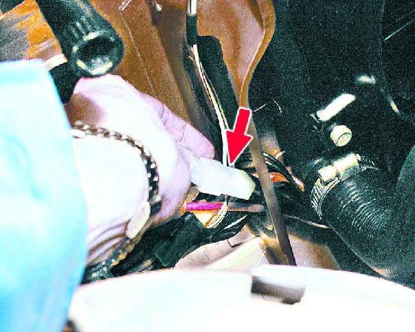 два провода, подсоединенных к датчику включения вентилятора, и включите