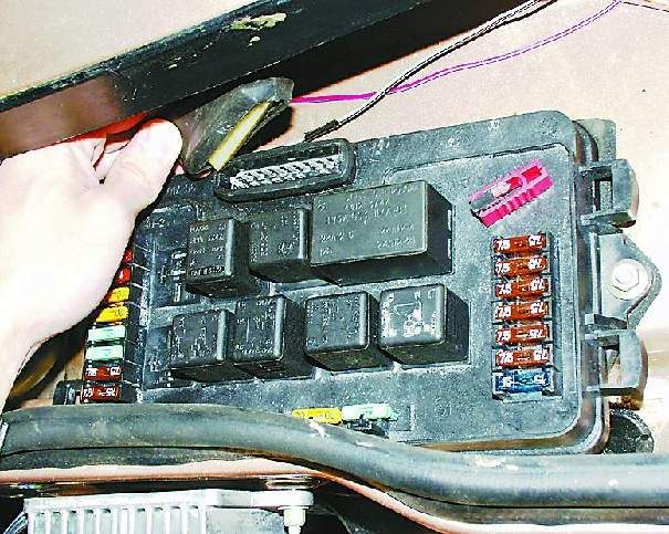 с блока реле и предохранителей, отжав пластмассовые защелки.
