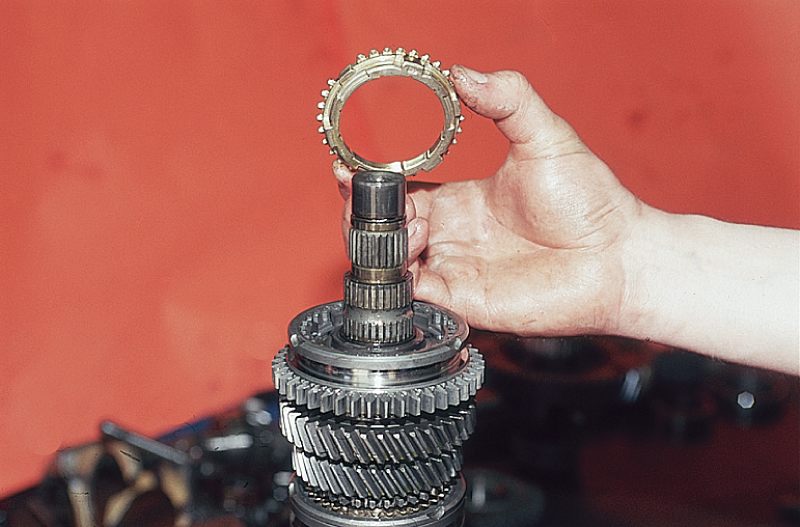 - Снимаем скользящую муфту со ступицей синхронизатора и блокирующее кольцо синхронизатора II передачи.