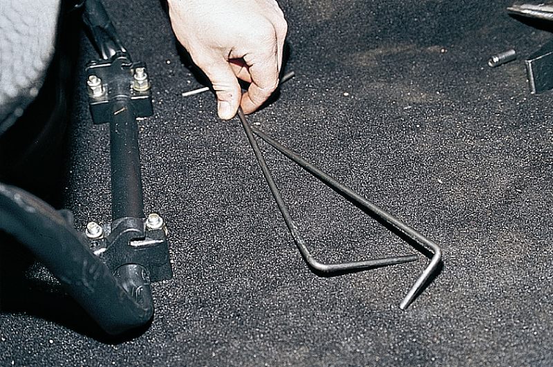 …и головкой "на 8" отворачиваем два болта переднего крепления салазок.