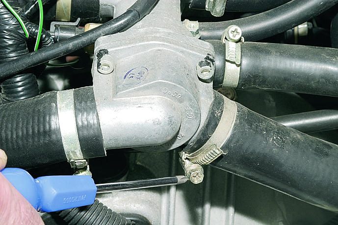 Устанавливаем термостат в обратной последовательности, всегда используя новое уплотнительное кольцо.