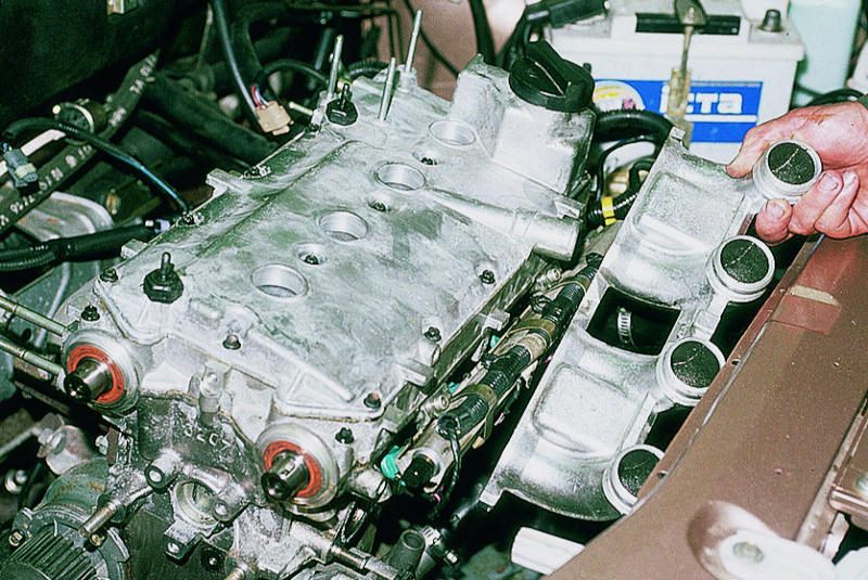 Устанавливаем впускной коллектор и ресивер в обратной последовательности.