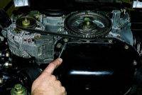 Отворачиваем гайки крепления подушек левой и правой опор силового агрегата к кронштейнам поперечины передней подвески (см. Снятие опор силового агрегата).