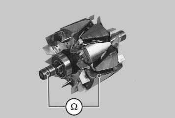 27. Проверьте тестером сопротивление обмотки ротора, подсоединив его к контактным кольцам. Если тестер будут показывать бесконечность, значит, в обмотке ротора обрыв и его необходимо заменить.