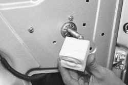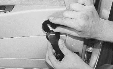 1. Отожмите от розетки тонкой отверткой фиксатор ручки стеклоподъемника.