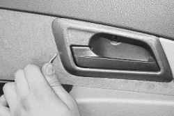 5. Подденьте отверткой облицовку внутренней ручки двери…