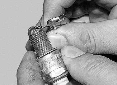 6. ...проверьте зазор между электродами свечи (только круглым щупом). Он должен быть 1,00–1,13 мм.