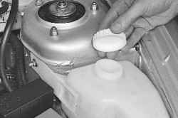 Бачок омывателя расположен в моторном отсеке перед расширительным бачком и закреплен на брызговике левого переднего крыла.