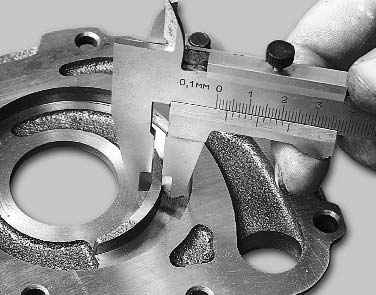 14. Измерьте в средней части ширину сегмента корпуса насоса. Если ширина меньше 3,4 мм, замените корпус.