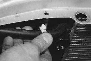 4. Ослабьте затяжку хомута крепления к радиатору подводящего шланга...