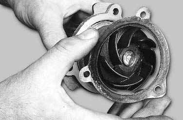 5.17.6. Замена водяного насосаОсновными дефектами водяного насоса являются течь из него охлаждающей жидкости и износ подшипника (определяется по повышенному шуму при работе). Ремонт водяного насоса, как правило, к желаемому результату не приводит, поэтому рекомендуется заменять насос в сборе.